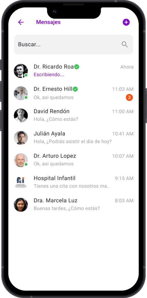Contamos con un chat que permite conectar a médicos con usuarios, permitiéndoles enviar imágenes y archivos.